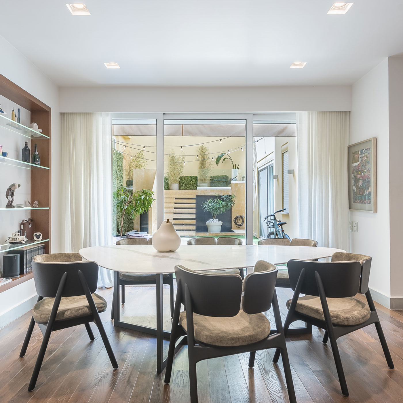 The goal was to highlight an existing ground-floor apartment in Kolonaki through the addition of custom-designed furniture, selected loose furnishings, and decorative lighting fixtures based on the needs of the owner. A key requirement was the seamless integration of the new elements into the existing space and the overall character of the apartment.