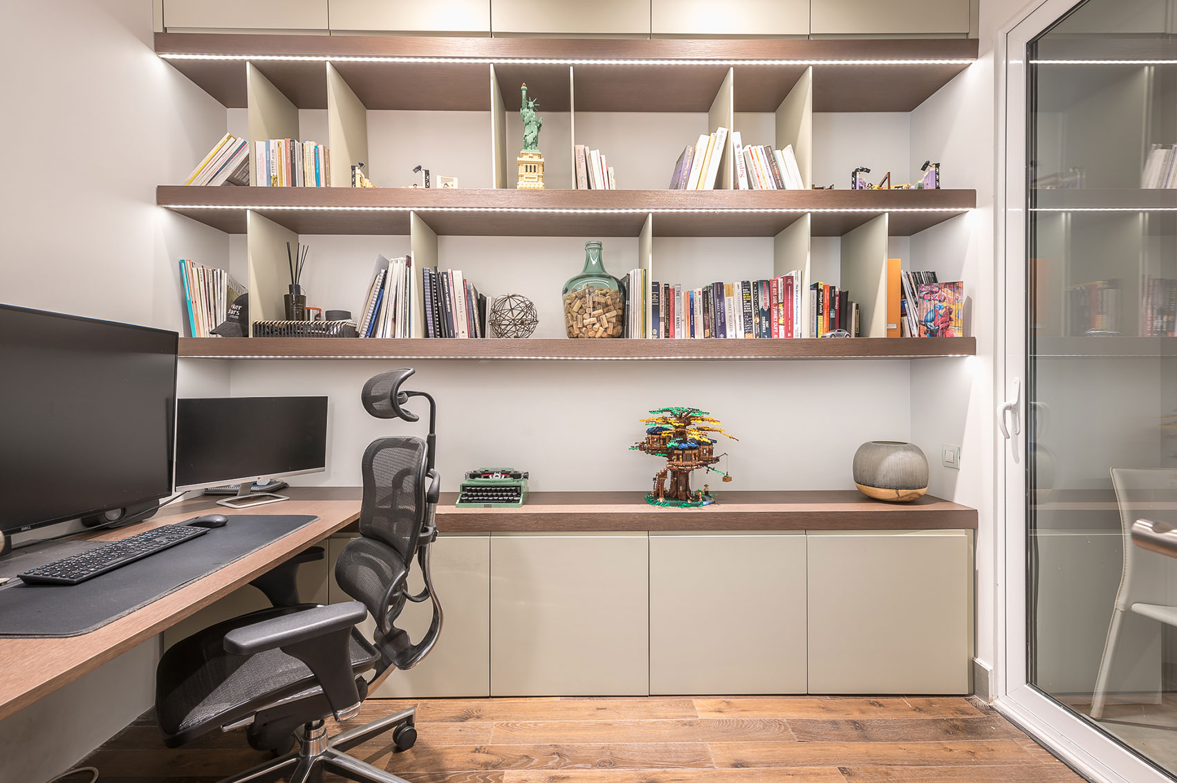 The selection of materials such as wood, metal, and marble in tones that complement the space enhances the sense of familiarity and the pleasant atmosphere experienced by the users.